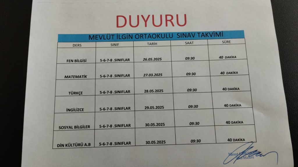 2024-2025 2.DÖNEM 2.ORTAK SINAV TAKVİMİ